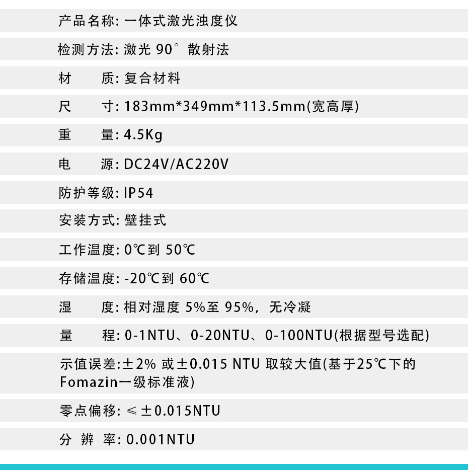光電濁度儀是用于測量懸浮于水或透明液體中不溶性顆粒物質(zhì)所產(chǎn)生的散射程度,并能定量表征這些懸浮顆粒物質(zhì)的含量。本儀器采用國際標(biāo)準(zhǔn)ISO7027中規(guī)定的福爾馬肼濁度標(biāo)準(zhǔn)溶液進(jìn)行標(biāo)定。廣泛應(yīng)用于發(fā)電廠、自來水廠、生活污水處理工廠、飲料廠、環(huán)保部門、工業(yè)用水、制酒行業(yè)、制藥行業(yè)、防疫部門、醫(yī)院等部門的濁度測定。
